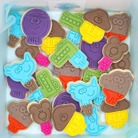 Multicoloured character cookies (Hey Duggee)